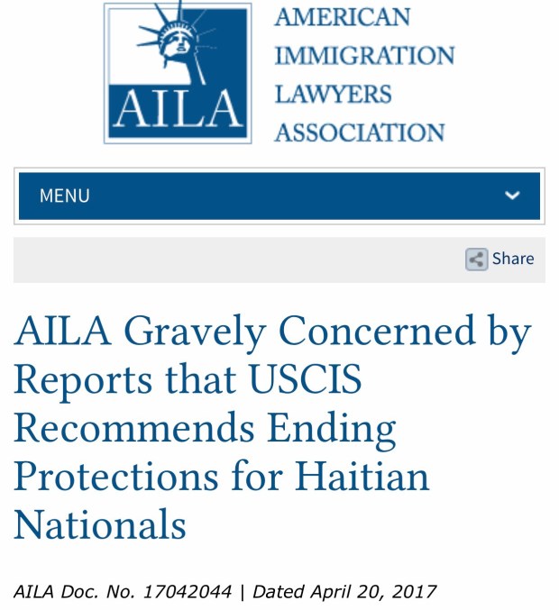 The United States Citizenship and Immigration Services (USCIS) is recommending that the United States end Temporary Protected Status (TPS) for Haitian nationals in January 2018. Eliminating the program will create a hardship for those that have been here for the last seven years.