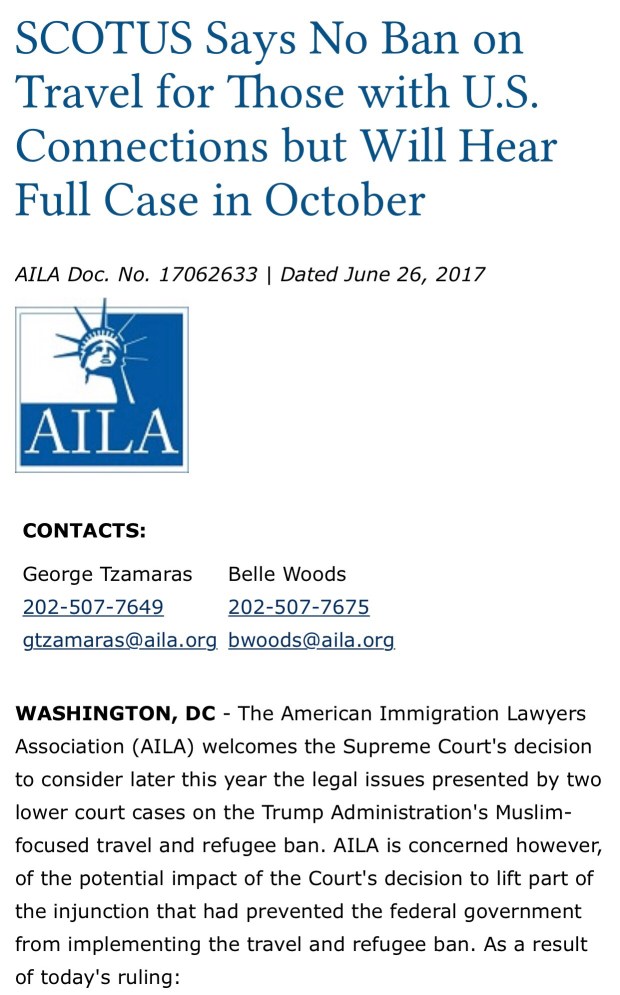 “Approximately 72 hours from the release of the decision, Department of Homeland Security (DHS) officials, consular officers, and others will be authorized to ban refugees and travelers from the six affected countries who cannot show a bona fide relationship with a U.S.-based family member or entity.